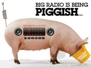 Update: With Congress back in session, both the the National Association of Broadcasters and MusicFIRST have amped up their lobbying efforts. The NAB’s campaign is pretty innocuous, Stop The Performance Tax. MusicFIRST, however, has decided to play nasty. Here’s the logo for their site, PiggyRadio.com